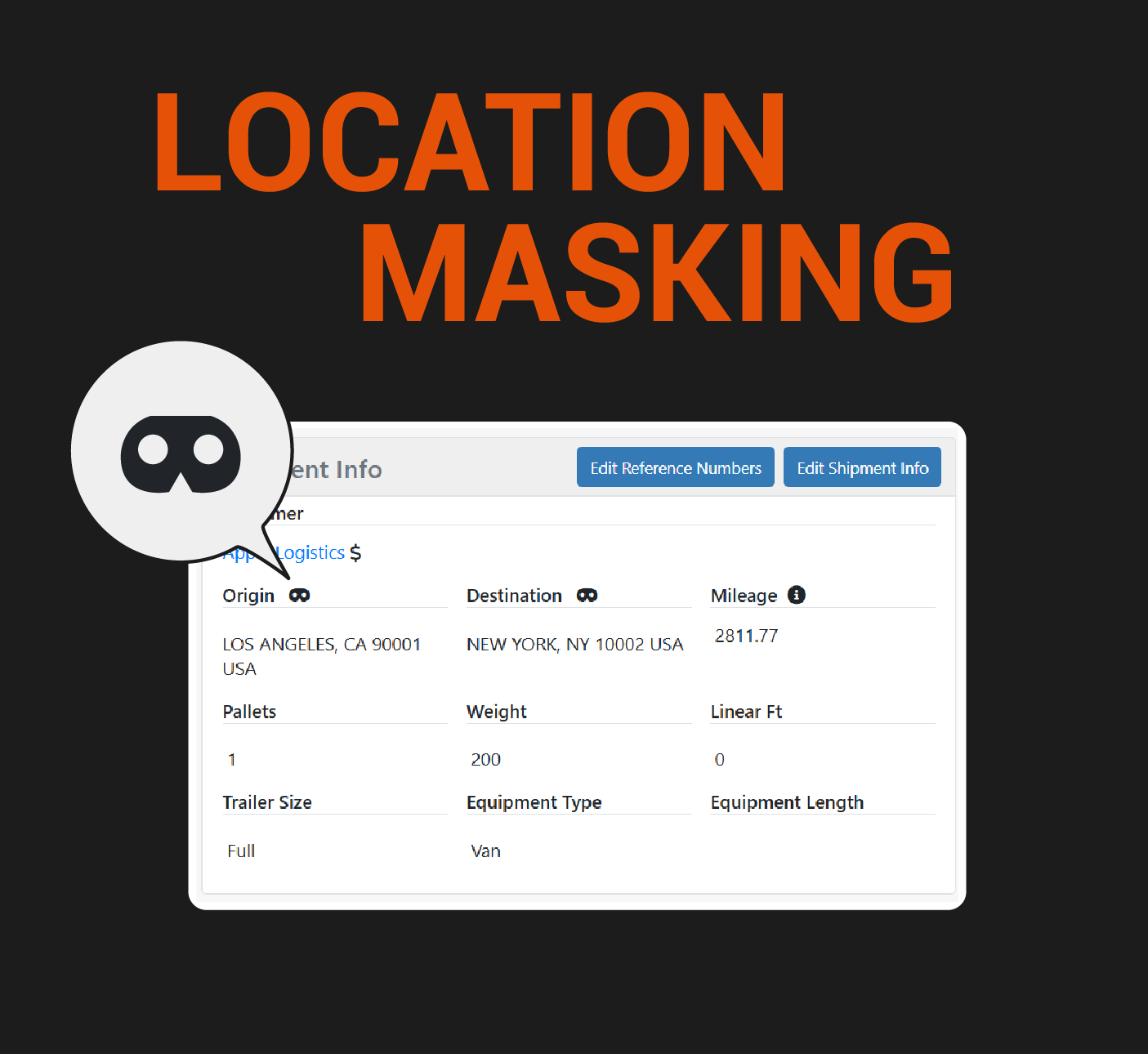 Protect shipper relationships and improve load coverage when posting to public load boards. Location Masking allows you to post loads using a broader or alternative city, state, or ZIP code, helping to keep shippers anonymous in markets with limited pickup locations and preventing carriers from bypassing broker relationships. This feature applies masked locations only to load board postings, while the true shipment origin and destination remain unchanged in the TMS.