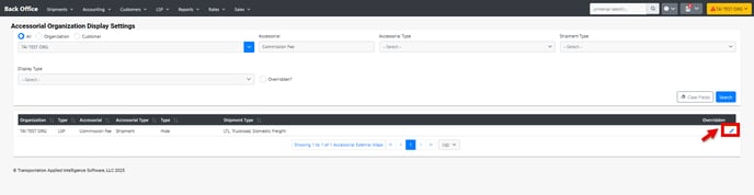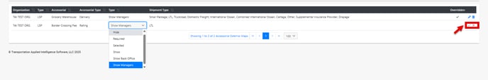 Once you find the desired accessorial, click the pencil (edit) icon to modify its Display Type.