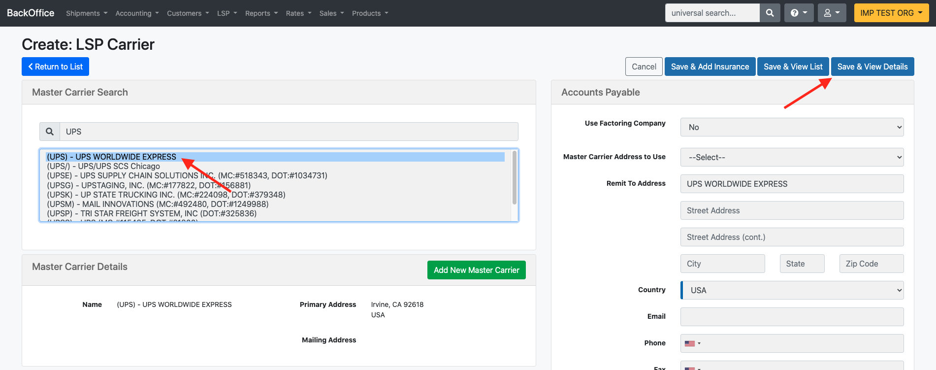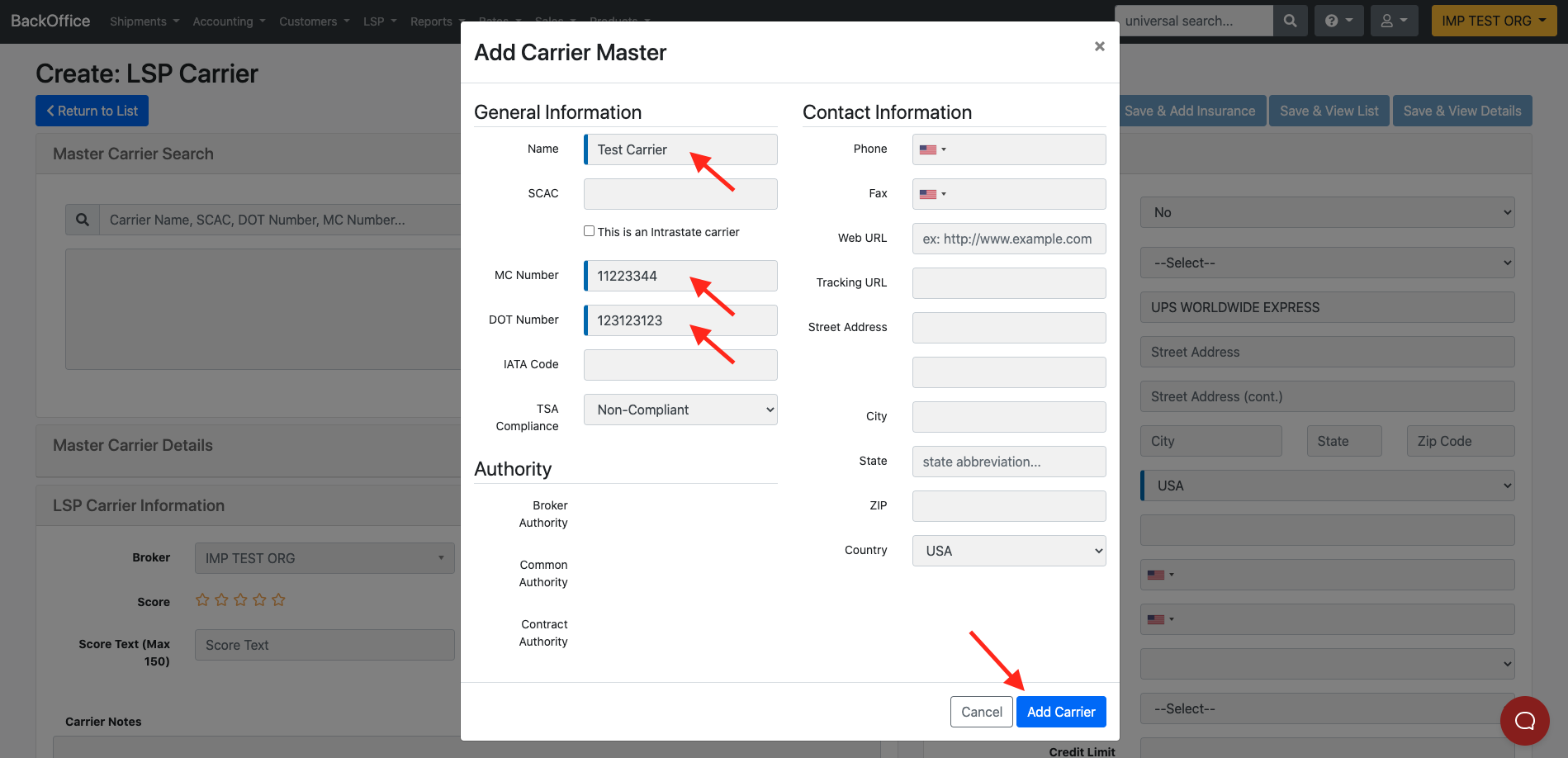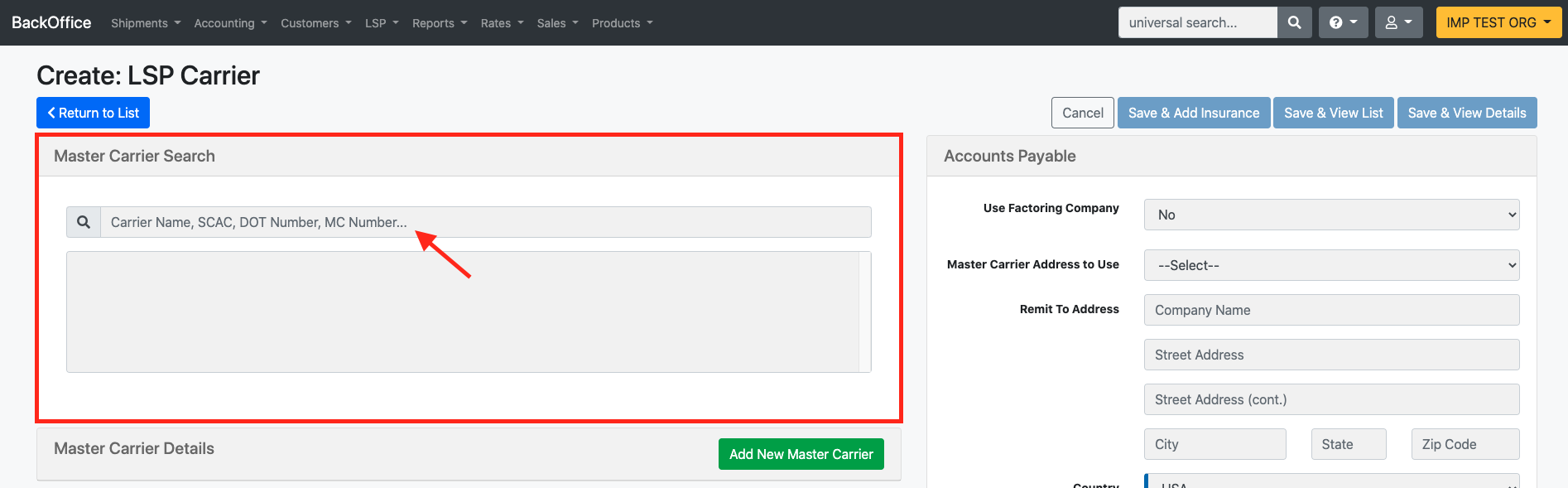 This guide walks you through the steps to add a new LSP carrier to your TMS, including how to search for an existing carrier, create a new master carrier if needed, and adjust required fields.