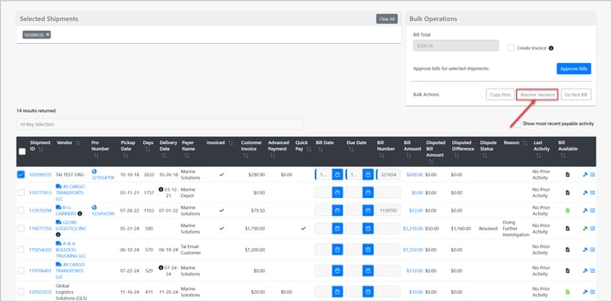 Tip: When approving bills, you can use the ‘Create Customer Invoice’ check box to simultaneously create the customer invoice with the carrier bill.