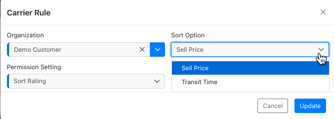- Transit Time - This orders the rates based on Transit Times, then Sell Price