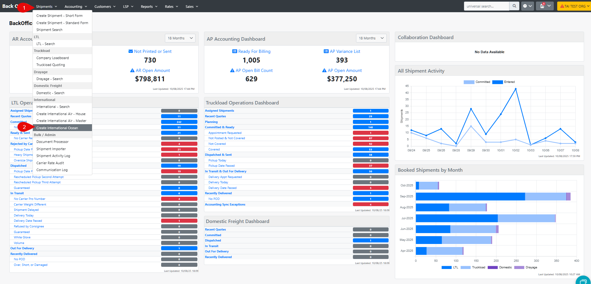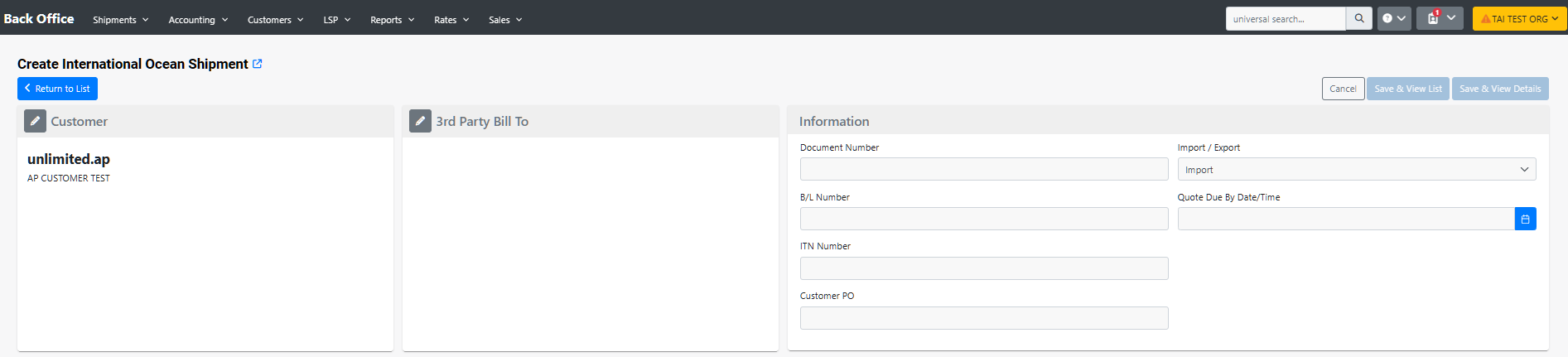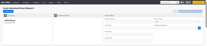 This article will guide you through the process of creating an International Ocean Shipment in the TMS.