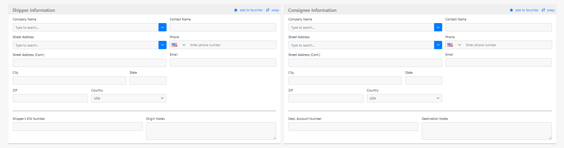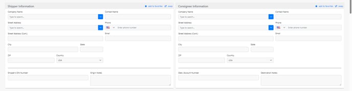 Shipper Information and Consignee Information