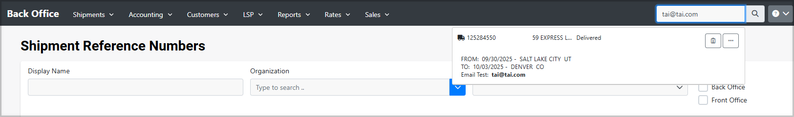 Universal Search supports both standard reference numbers (such as Shipment ID, PRO, BOL, or Invoice number) and custom reference numbers.