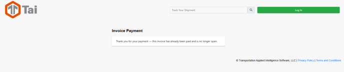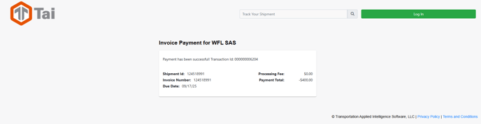 This secure payment page will automatically display the invoice amount and include the desired processing fees. Once payment has been completed, the TMS will show a successful payment. These steps are desiged to streamline the payment process.