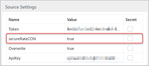 The integration must have a source setting called secureRateCON, and the value must equal True.