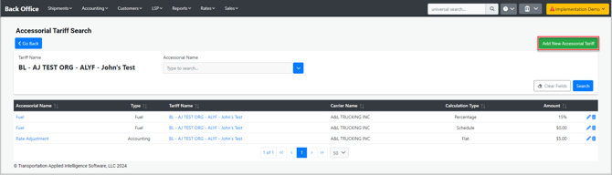 - Accessorial: Look for the accessorial to add to the tariff through the name.