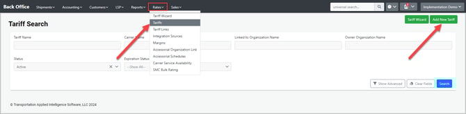 The purpose of this article is to describe the process of adding manual tariffs to the TMS. This is used when a direct API integration with the carrier is unavailable.