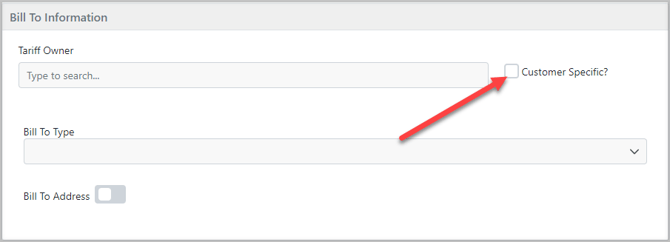 - Check the "Customer Specific" box if it needs to be linked to a particular customer. To complete this, a tariff link will also need to be added.