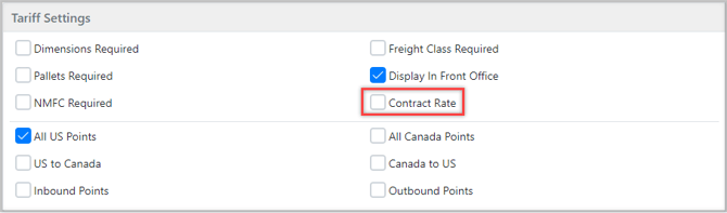 - Tariff Settings: Select if the tariff will be available for the front office, the rate requirements, and the lane's initial points. These can then be modified and adjusted on the tariff lane.
