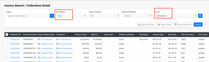 - Pay Status (Partial Paid, Over Paid, Fully Paid, Open, All)