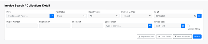 - By default, the page will show all loads whose Pay Status is Open, until the current date.