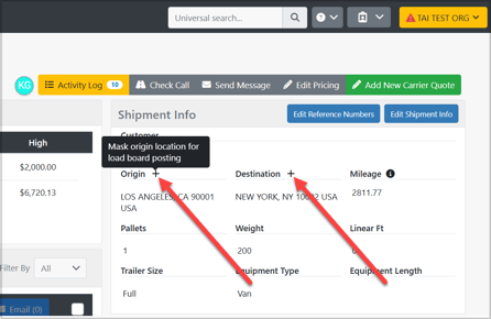 Control which city, state, and ZIP code are sent to load boards when posting a load, without changing the actual shipment origin or destination.