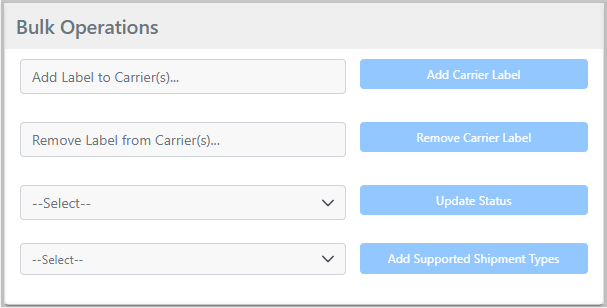 Add Carrier Labels – Enter a label → click Add → applied to all selected carriers (if not already present).