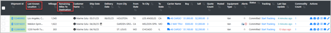 You can enable two optional fields on both the Company Loadboard and Shipment Search pages to improve shipment tracking visibility: