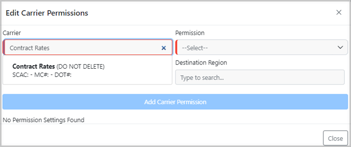 To exclude a specific customer from all contracted sell rates, navigate to the customer tool section in their profile and add Contract Rates under Carrier Rating Permissions.