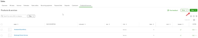 To have your AR sync over to QuickBooks Online, you must set up a code in your Products and Services Section in your QuickBooks Online to enable your AR to sync over properly. Click the Gear Icon on the top sight and click Products and Services. You will be setting up a code called TRANS. It will allow your invoices and invoice payments to sync over. Select New on the top right and select Service. Type in "TRANS" in the Name section and make sure that Income Account is set to Sales. You will need to have a sales account in your income account section.