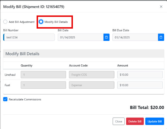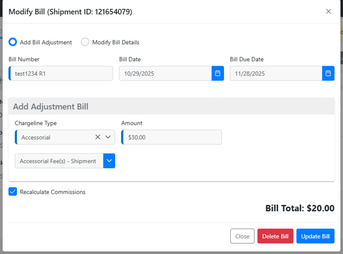 You can choose whether you want to Recalculate Commissions based on the bill change.