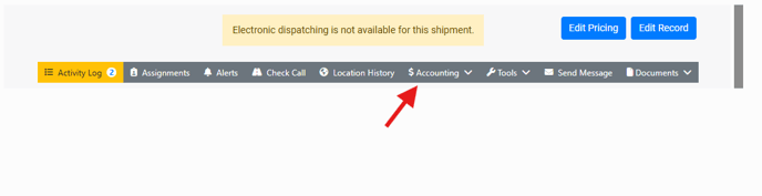Any accessorial that already exists on the bill will not display as a selectable option.