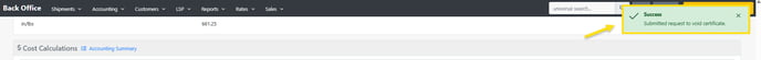 If a shipment is In Transit or Delivered status, the certificate cannot be voided.