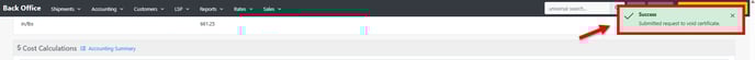 If a shipment is in transit or delivered status, the certificate cannot be voided.
