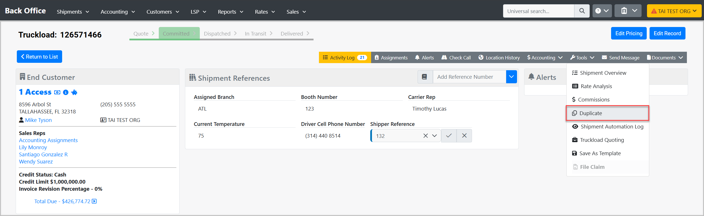 Duplicating a shipment enables you to quickly create a copy of an existing shipment, saving you time and maintaining consistency when entering similar shipments.